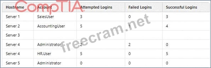 Comprehensive and Detailed Explanation: * Understanding the Security Event: * Administrator accounts are highly privileged and require strict monitoring. * Server 4 shows failed login attempts for the administrator account. This could indicate a brute-force attack or unauthorized access attempt. * The fact that none of the admin login attempts were successful suggests someone was trying to guess the credentials. * Why Option D is Correct: * Failed logins for administrator accounts are a critical security concern. * If an attacker gains access, they could escalate privileges and compromise the network. * Investigating unauthorized admin login attempts should be the top priority in a log audit. * Why Other Options Are Incorrect: * A (Endpoint not submitting logs): While this is concerning, it does not indicate an active attack . * B (Lateral movement): There's no evidence of a compromised account moving between servers yet. * C (Misconfigured syslog server): False negatives are a possibility, but the failed admin logins are real.