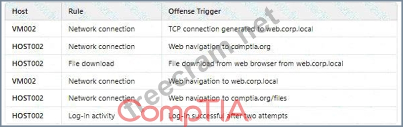 Comprehensive and Detailed Explanation: * Understanding the Security Event: * HOST002 is the only device authorized for internet traffic. However, theSIEM logs show that VM002 is making network connections to web.corp.local. * This indicatesunauthorized access, which could bea sign of lateral movement or network infection. * This is ared flagfor potential malware, unauthorized software, or a compromised host. * Why Option D is Correct: * Unusual network traffic patternsare often an indicator of acompromised system. * VM002 should not be communicating externally, but it is. * This suggests a possiblebreach or malware infectionattempting to communicate with a command- and-control (C2) server. * Why Other Options Are Incorrect: * A (Misconfiguration):While a misconfiguration could explain the unauthorized connections, the pattern of activity suggests something more malicious. * B (Security incident on HOST002):The issue is not with HOST002. The suspicious activity isfrom VM002. * C (False positives):The repeated pattern of unauthorized connections makes false positivesunlikely. Reference: CompTIASecurityX CAS-005 Official Study Guide:Chapter on SIEM & Incident Analysis MITRE ATT&CK Tactics:Lateral Movement & Network-based Attacks NIST 800-94:Guidelines for Network Intrusion Detection and Analysis