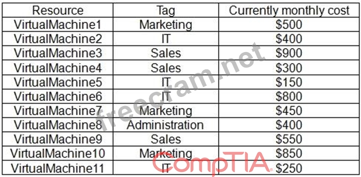 Reserved instances are a type of virtual machine (VM) that are purchased in advance and offer a significant discount compared to on-demand pricing. The company is considering moving all of its VMs to reserved instances, which would save 20% on each instance. The instances the company would move are shown below. The total annual cost of the VMs is $66600. Therefore, the company would save 20% of $66600, which is $13320 annually. Reference: CompTIA Cloud Essentials+ Certification Study Guide, Second Edition (Exam CLO-002), Chapter 2: Cloud Concepts, Section 2.2: Cloud Economics, Subsection 2.2.2: Cloud Pricing Models This is a table of virtual machines (VMs) that the company is considering moving to reserved instances.