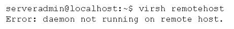 A systems administrator is trying to connect to a remote KVM host. The command line appears as follows: After logging in to the remote server, the administrator verifies the daemon is running. Which of the following should the administrator try NEXT?