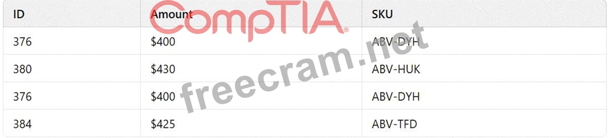 * Rationale:The dataset shows that the record with ID 376, Amount $400, and SKU ABV-DYH appears twice. This repetition indicates the presence of duplicate data, which can skew analysis results if not addressed.