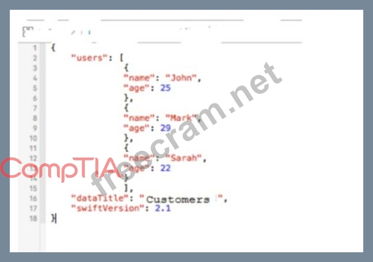 The image depicts a snippet of code in the JSON format, which stands for JavaScript Object Notation. JSON is a lightweight data-interchange format that is easy for humans to read and write and easy for machines to parse and generate. It is based on a subset of the JavaScript Programming Language and is commonly used to transmit data in web applications.