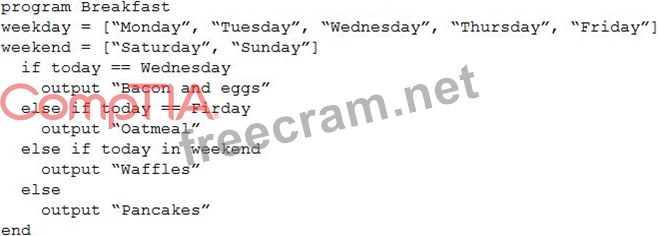 If the Breakfast program ran on Sunday, which of the following would be the output?