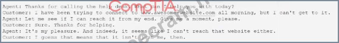 A help desk supervisor reviews the following excerpt of a call transcript: Which of the following was the agent trying to accomplish with this exchange?