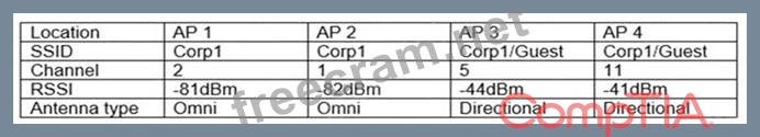 Several WIFI users are reporting the inability to connect to the network. WLAN users on the guest network are able to access all network resources without any performance issues. The following table summarizes the findings after a site survey of the area in question: Which of the following should a wireless technician do NEXT to troubleshoot this issue?