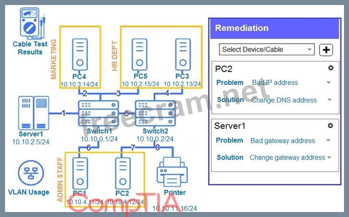 Troubleshoot all the network components and review the cable test results by clicking on each device and cable.