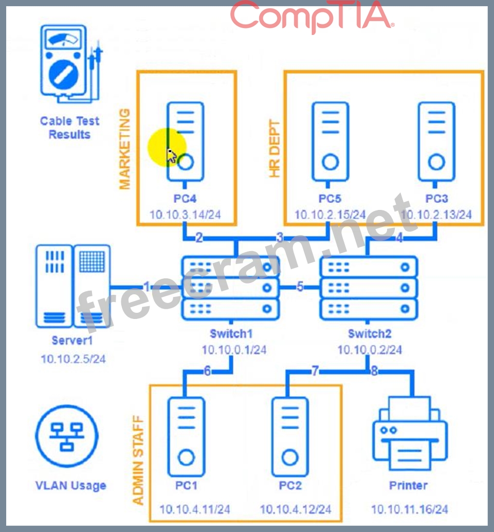(Note: Ips will be change on each simulation task, so we have given example answer for the understanding) To troubleshoot all the network components and review the cable test results, you can use the following steps: