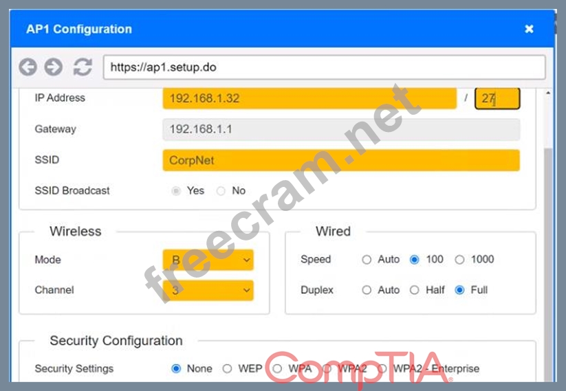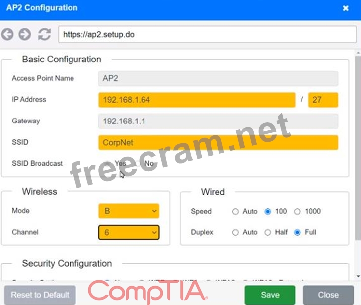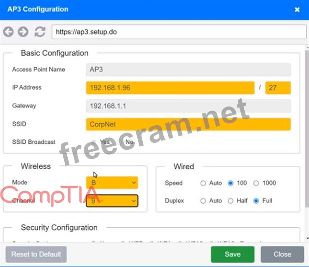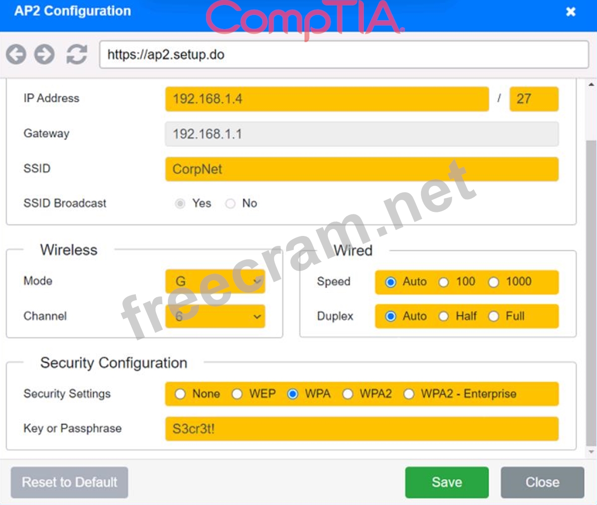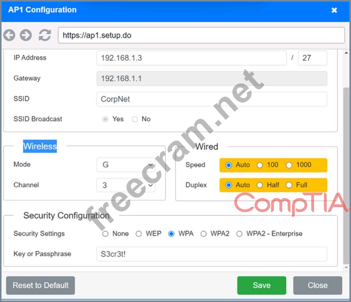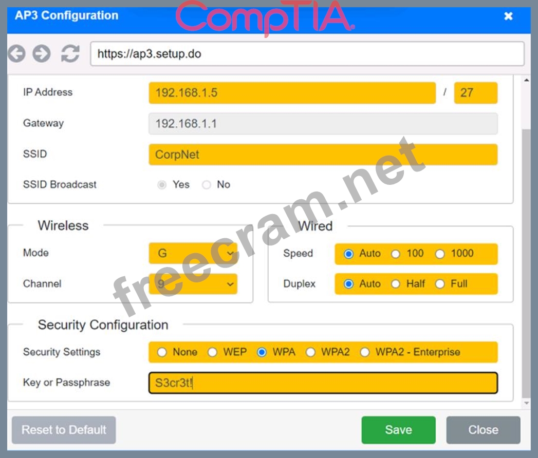 The SSIDs need to be configured as CorpNet with a key of S3cr3t!