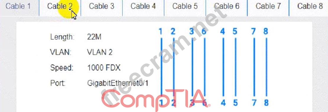 Question 22: After running a Cat 8 cable using passthrough plugs, an elec...