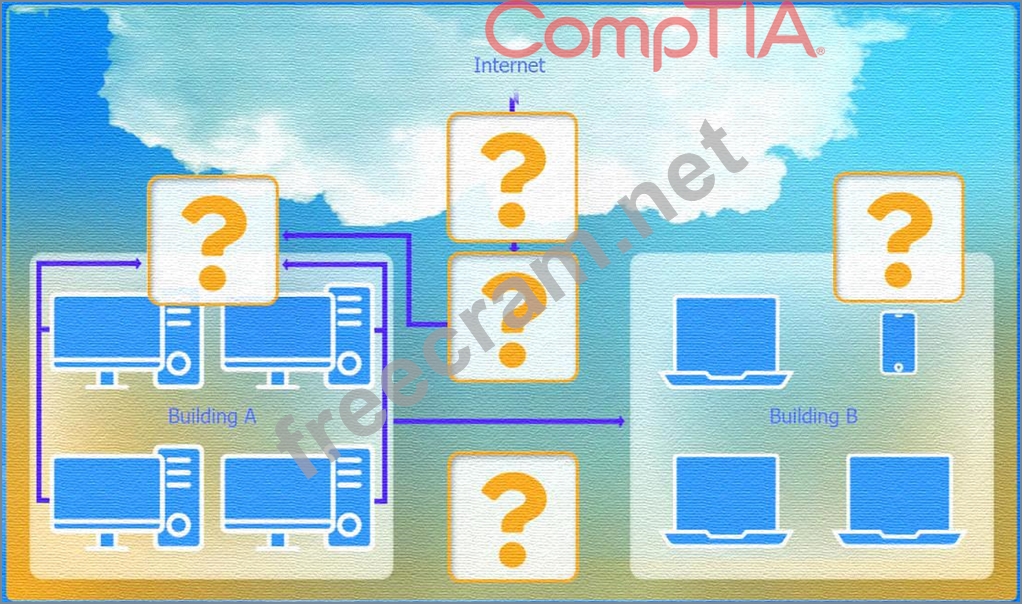* Bottom-left (Building A): Firewall (inspect traffic before it enters the network)