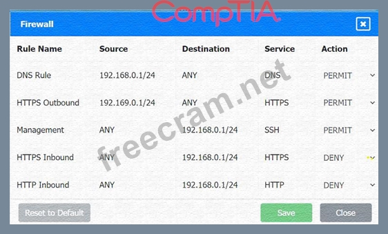 * HTTP Inbound: This rule denies inbound HTTP traffic to the internal network, which is correct for security purposes.