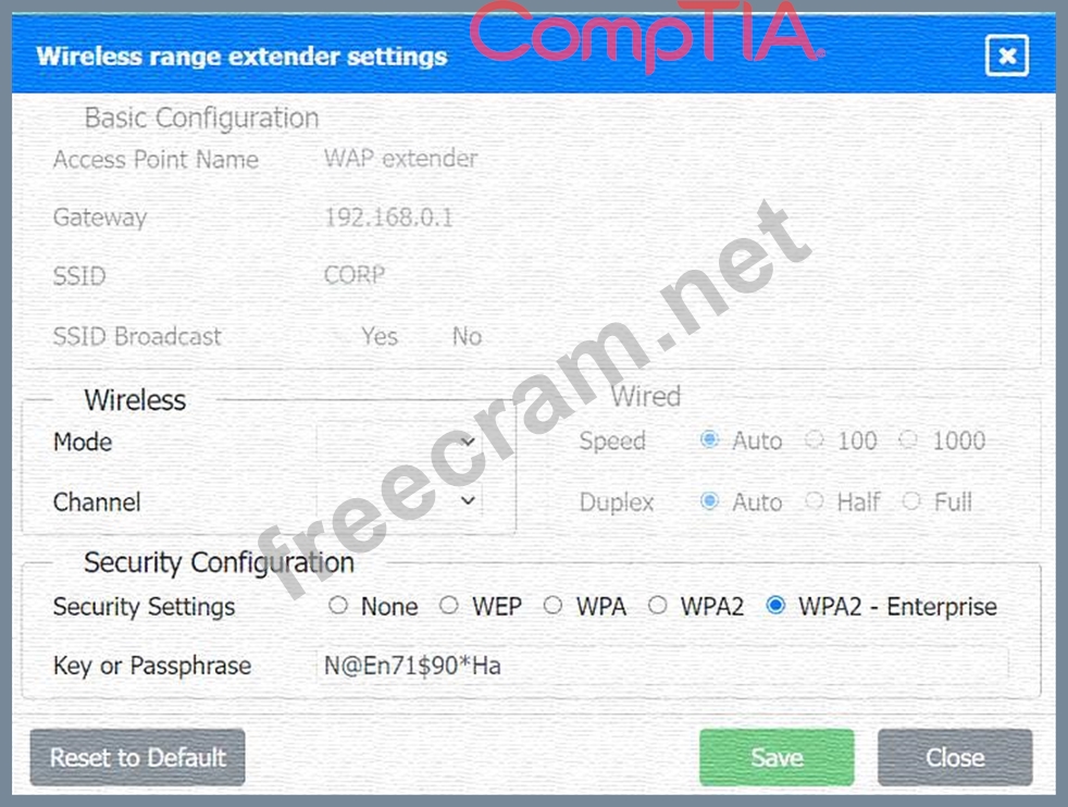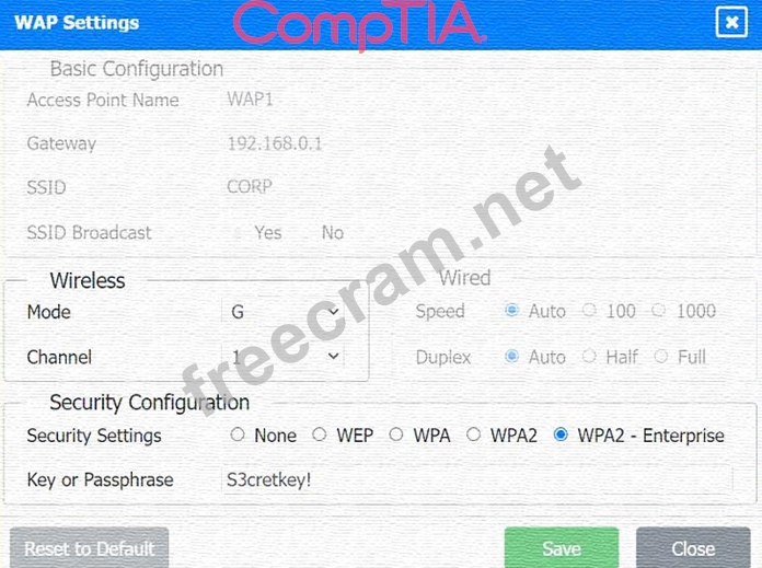 * If you selectWPA2 - Enterprise, you will need to configure additional settings for authentication servers, such as RADIUS, which is not shown in the exhibit.