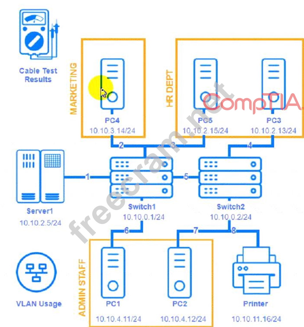 (Note: Ips will be change on each simulation task, so we have given example answer for the understanding) To troubleshoot all the network components and review the cable test results, you can use the following steps: