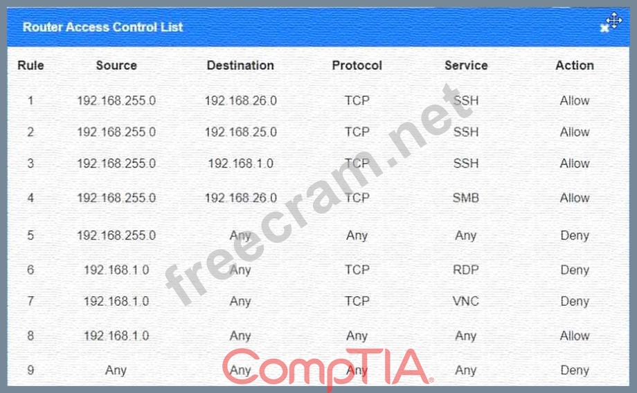 Question 10: You have been tasked with implementing an ACL on the router ...