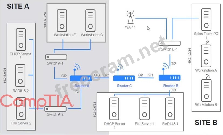 Users are unable to access files on their department share located on flle_server 2. The network administrator has been tasked with validating routing between networks hosting workstation A and file server 2.