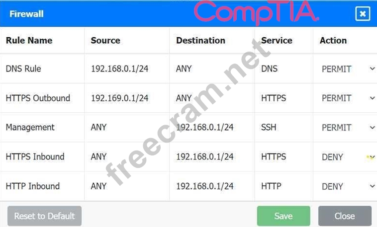 HTTPS Inbound ANY 192.168.0.1/24 HTTPS DENY