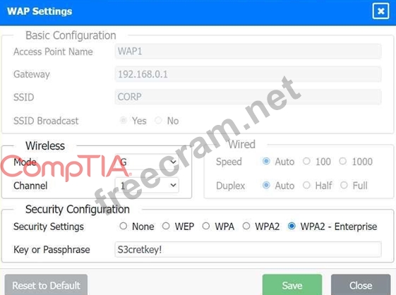 Ensure the SSID is set to "CORP" as shown in the exhibit.