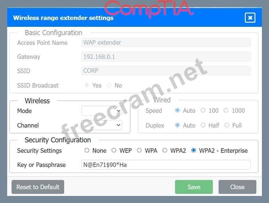WPA2 or WPA2 - Enterprise: Choose one of these options for stronger security. WPA2- Enterprise provides more robust security with centralized authentication, which is ideal for a corporate environment.