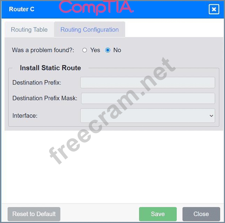 Ensure that each router has routes to the networks on which Workstation A and File Server 2 are located.