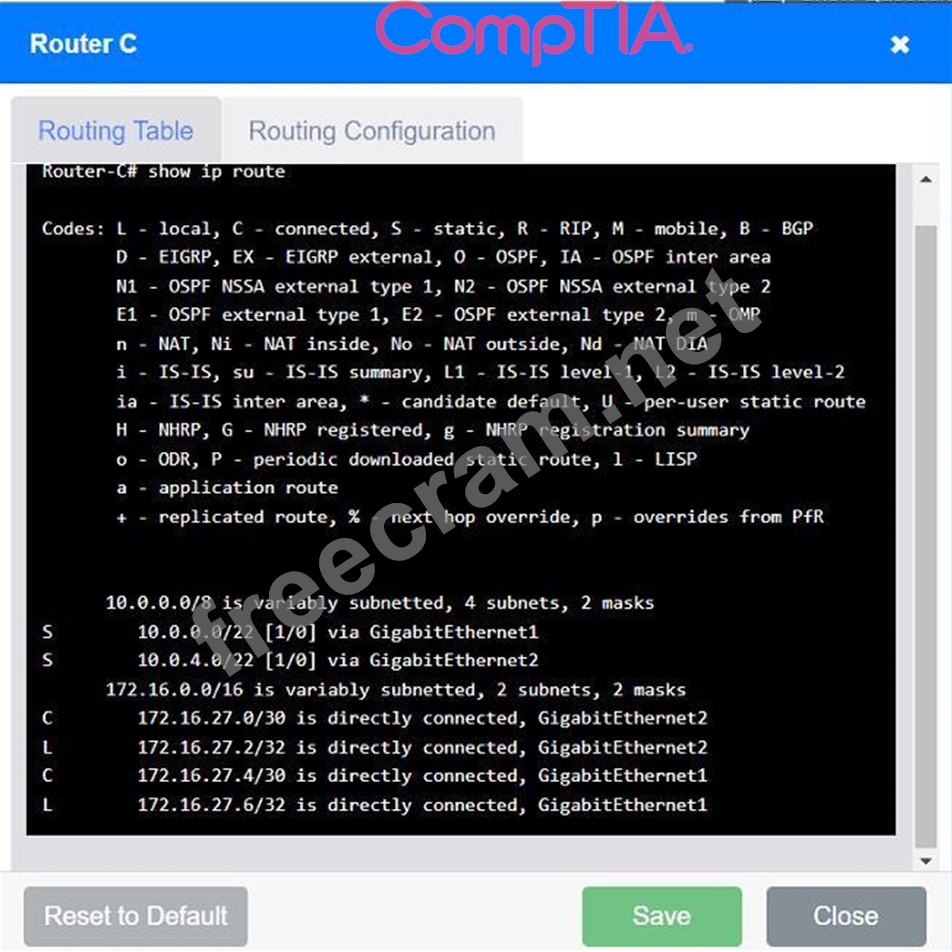 S 10.0.4.0/22 [1/0] via GigabitEthernet2