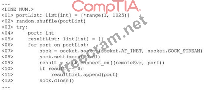 Which of the following line numbers from the script MOST likely contributed to the script triggering a "probable port scan" alert in the organization's IDS?