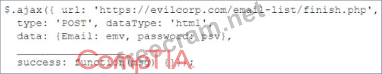 https://example.com/index.html. The engineer has designed the attack so that once the users enter the credentials, the index.html page takes the credentials and then forwards them to another server that the security engineer is controlling. Given the following information: