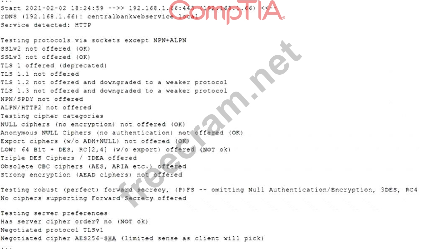 Question 105: A penetration tester runs a scan against a server and obtain...