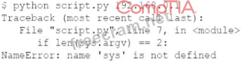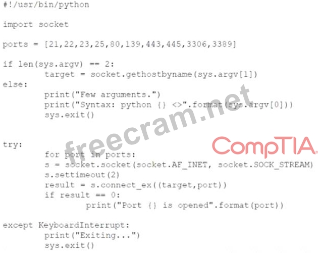 Question 154: A penetration tester ran a simple Python-based scanner. The ...