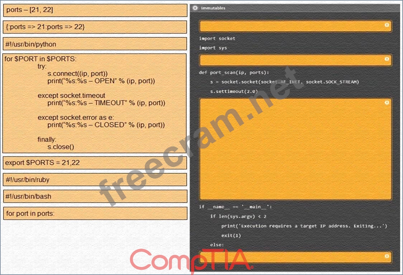 Question 154: A penetration tester ran a simple Python-based scanner. The ...