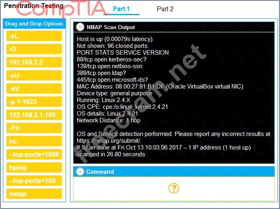 Question 17: A penetration tester runs the following command: l.comptia.l...
