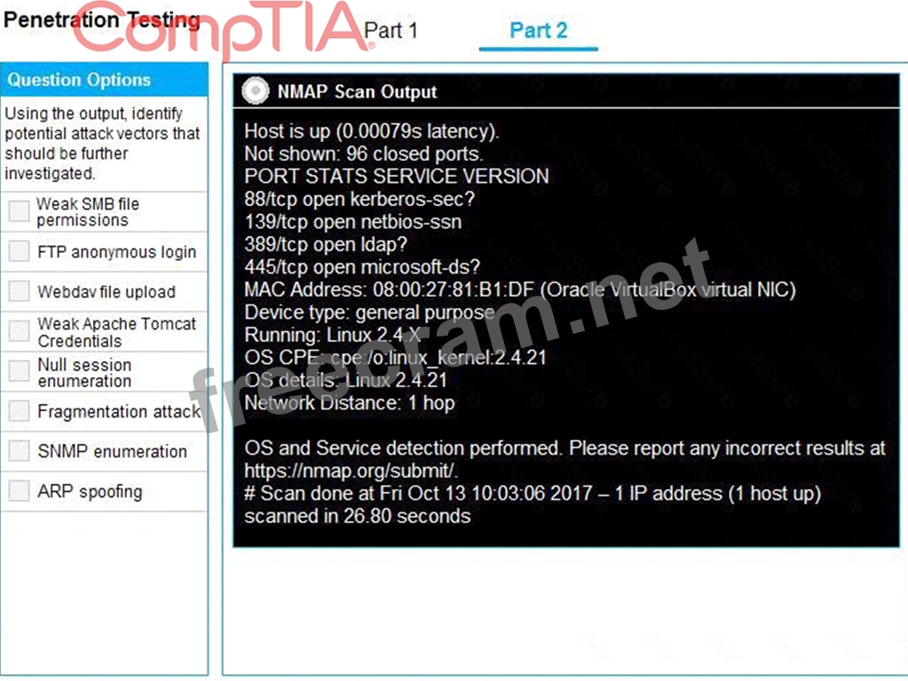 Question 36: A penetration tester is required to perform a vulnerability ...