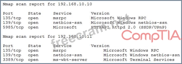 Question 40: The results of an Nmap scan are as follows: (Exhibit) Which ...