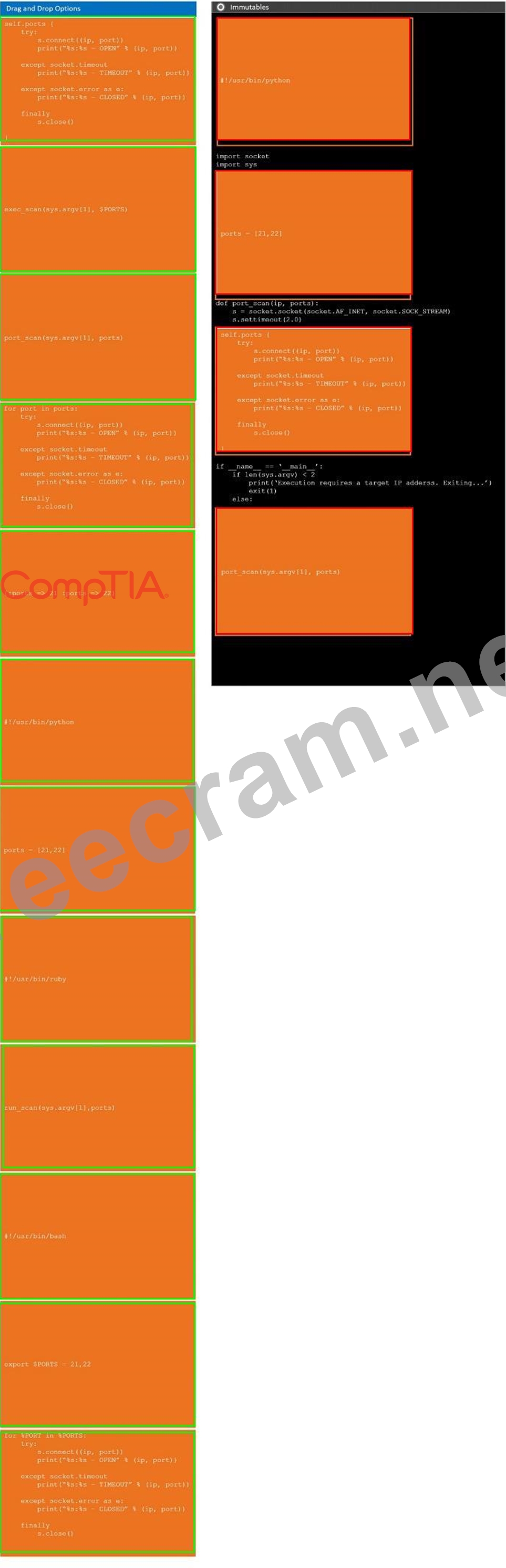 Analyze the code segments to determine which sections are needed to complete a port scanning script.