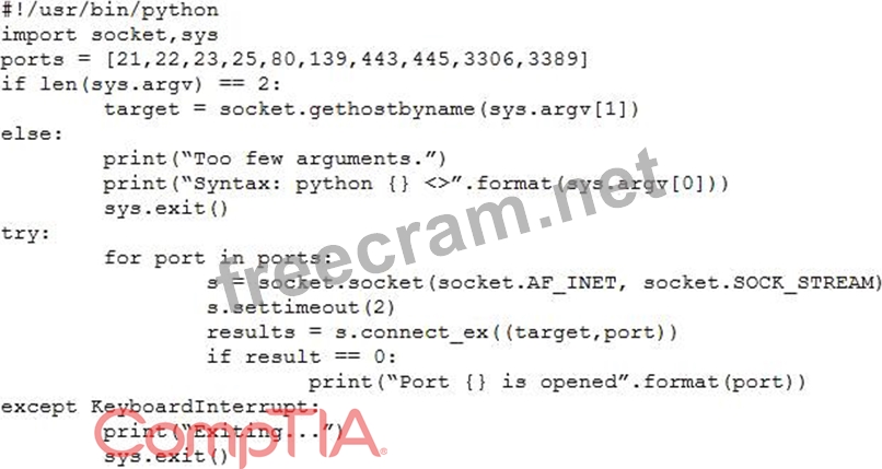 Question 126: A penetration tester wrote the following script to be used i...