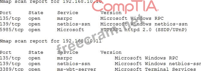 Question 53: The results of an Nmap scan are as follows: (Exhibit) Which ...
