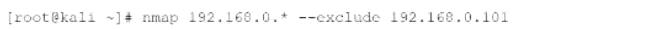 [root@kali ~]# nmap 192.168.0 .* -- exclude 192.168.0.101