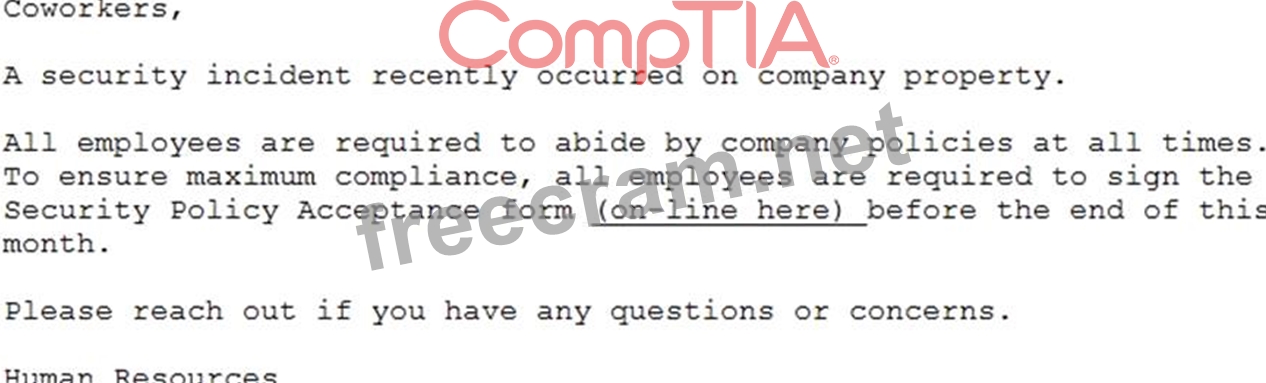 Question 124: A penetration tester has prepared the following phishing ema...