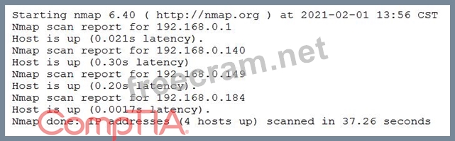 A penetration tester conducted a discovery scan that generated the following: Which of the following commands generated the results above and will transform them into a list of active hosts for further analysis?