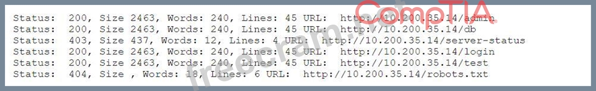 Question 130: A penetration tester was brute forcing an internal web serve...