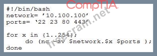 Question 26: A penetration tester writes the following script: (Exhibit) ...