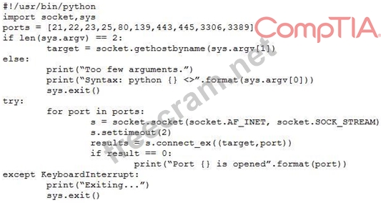 Question 26: A penetration tester writes the following script: (Exhibit) ...