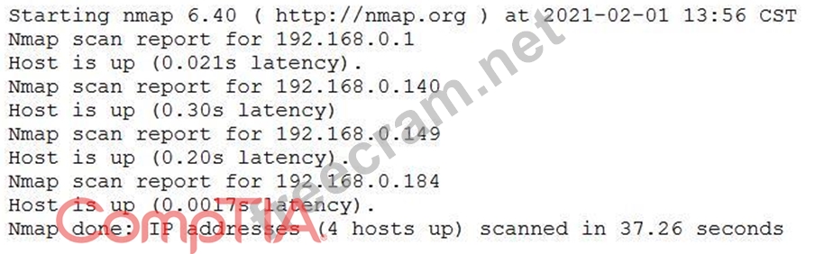 A penetration tester conducted a discovery scan that generated the following: Which of the following commands generated the results above and will transform them into a list of active hosts for further analysis?