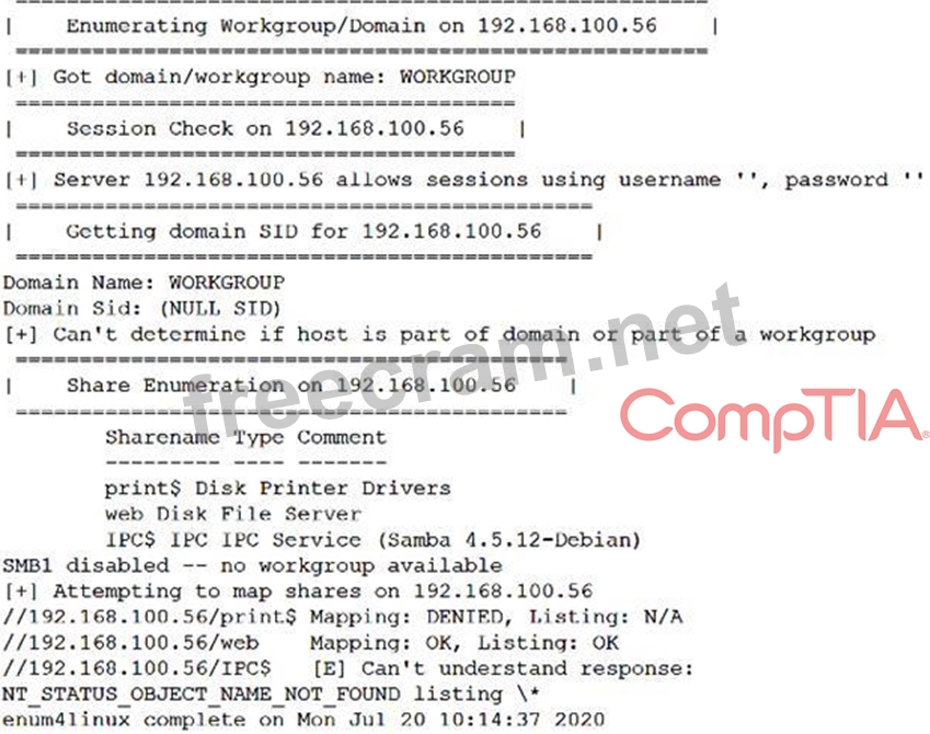 After running the enum4linux.pl command, a penetration tester received the following output: Which of the following commands should the penetration tester run NEXT?
