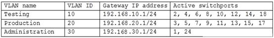 A server administrator is configuring the IP address on a newly provisioned server in the testing environment. The network VLANs are configured as follows: