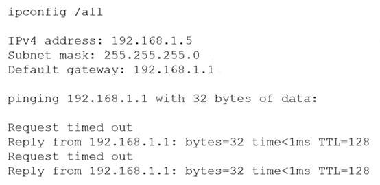 A server technician installs a new NIC on a server and configures the NIC for IP connectivity. The technician then tests the connection using the ping command. Given the following partial output of the ping and ipconfig commands: