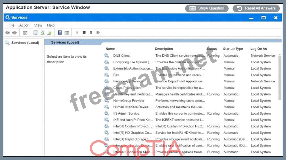 Using the Services menu provided, modify the appropriate application services to remedy the stated issues.