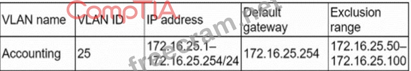 A server technician is placing a newly configured server into a corporate environment. The server will be used by members of the accounting department, who are currently assigned by the VLAN identified below: Which of the following IP address configurations should the technician assign to the new server so the members of the accounting group can access the server?