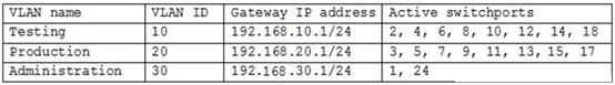 A server administrator is configuring the IP address on a newly provisioned server in the testing environment. The network VLANs are configured as follows: The administrator configures the IP address for the new server as follows: IP address: 192.168.1.1/24 Default gateway: 192.168.10.1 A ping sent to the default gateway is not successful. Which of the following IP address/default gateway combinations should the administrator have used for the new server?