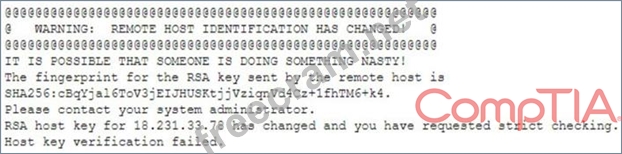 A researcher has been analyzing large data sets for the last ten months. The researcher works with colleagues from other institutions and typically connects via SSH to retrieve additional data. Historically, this setup has worked without issue, but the researcher recently started getting the following message: