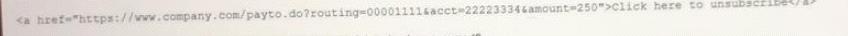 A forensics investigator is examining a number of unauthorized payments the were reported on the company's website. Some unusual log entries show users received an email for an unwanted mailing list and clicked on a link to attempt to unsubscribe. One of the users reported the email to the phishing team, and the forwarded email revealed the link to be: